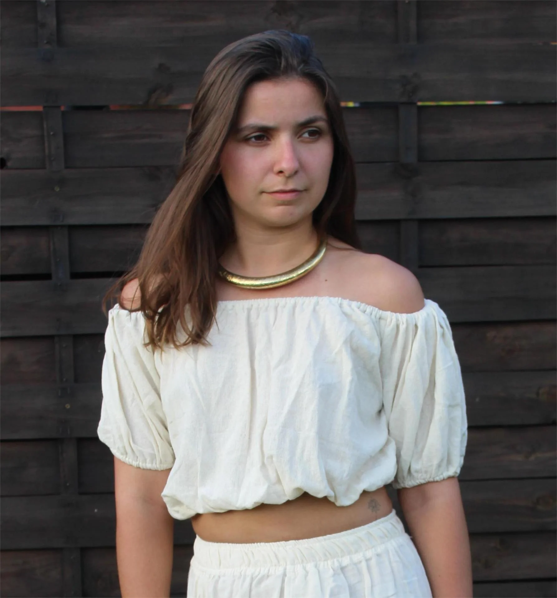 • Élégant et libre, ce crop top à épaule dénudée incarne parfaitement l’esprit bohème chic.